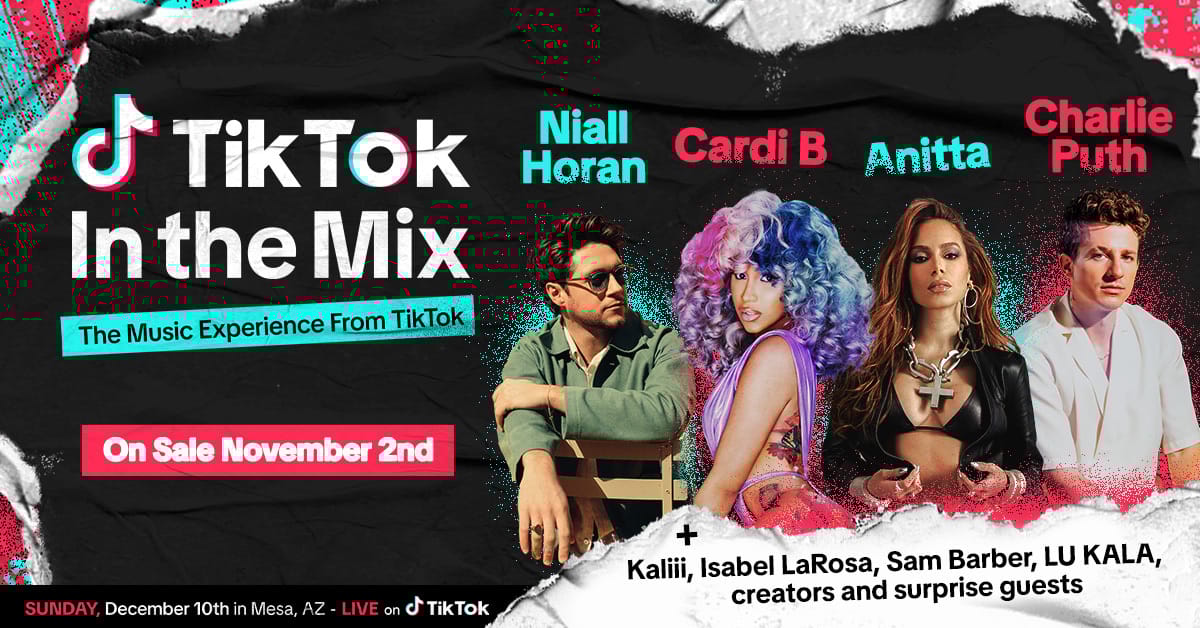 The inaugural “TikTok In The Mix” event will be held on December 10 in Mesa, AZ of all places, and feature Cardi B, Niall Horan, Anitta and Charlie Puth.