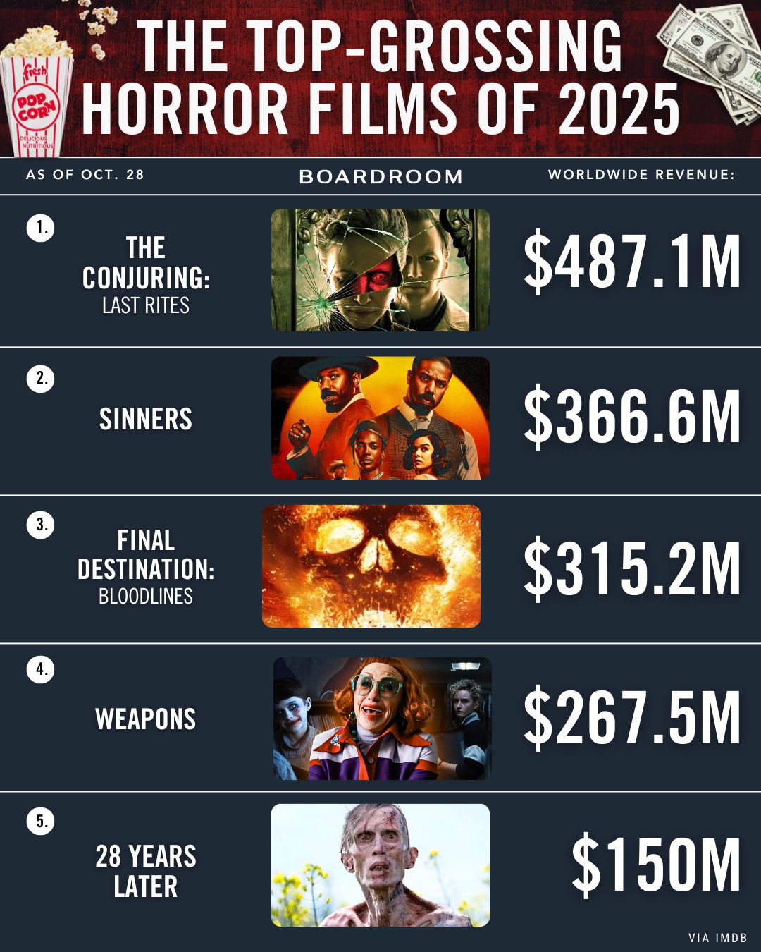 5) Halloween is over which means one thing: Brentwood moms gather to take down their 8 foot skeletons for another year we look at the top 5 grossing Horror movies of 2025 so far.