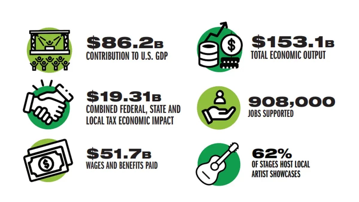 6) Independent venues in the US generated $153.1 billion in 2024. The National Independent Venues Association announced these results in their first ever ‘comprehensive national economic impact study,’ and the breakdown is below:
