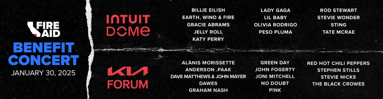 Something we never thought we would see? Live Nation, AEG the Azoff family coming together to produce an event in harmony. That’s exactly what we will see tonight with the FireAid benefit concert featuring 27 genuine headliners (thank god this is billed alphabetically) and streaming on every single platform imaginable. Surprised this isn’t on Clubhouse tbh.